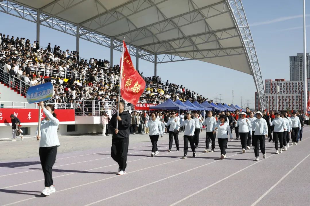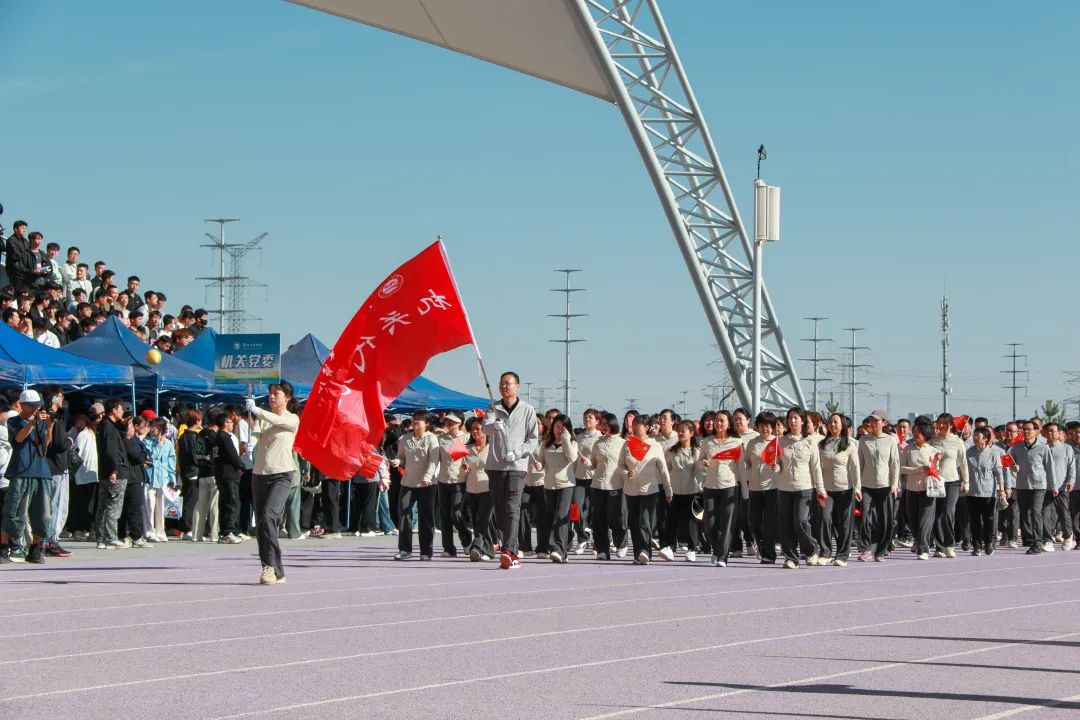 伴随着激昂的《运动员进行曲》,国旗方队、红旗队、花束队、裁判员方队及16支代表队精神抖擞,迈着整齐有力的步伐列队入场,整齐的动作、矫健的身姿、嘹亮的口号,充分展示了工院人积极进取、奋发向上的精神风貌。