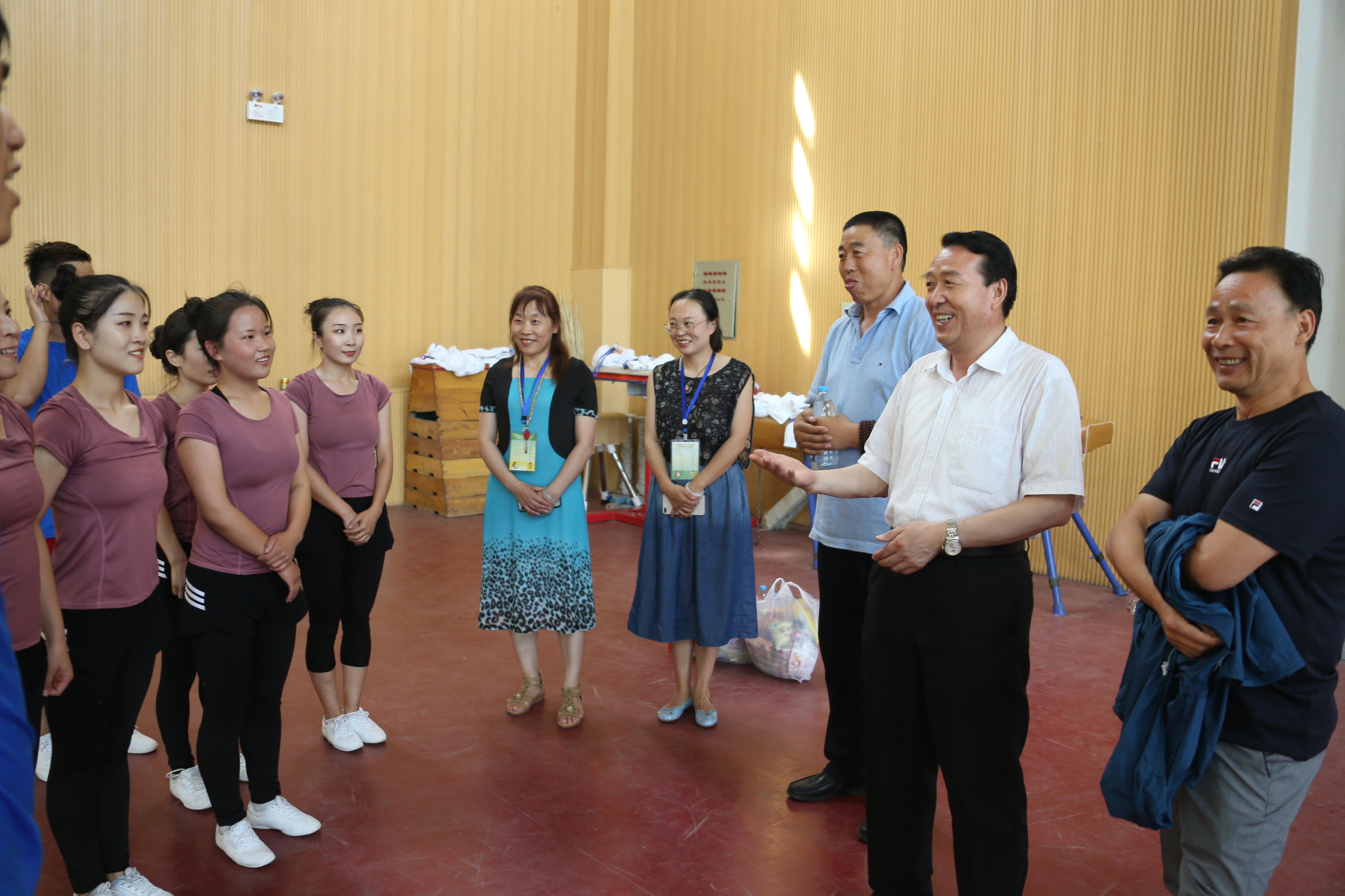 参加完有氧踏板比赛的预赛,校长王华栋前来慰问队员,对队员们的成绩做出了肯定,并给未来几天的比赛提供了足够多的信心。